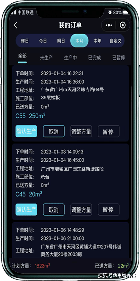 工地(用户)自助手机下单,控制生产或暂停,查看订单送货情况,减少双方电话沟通时间